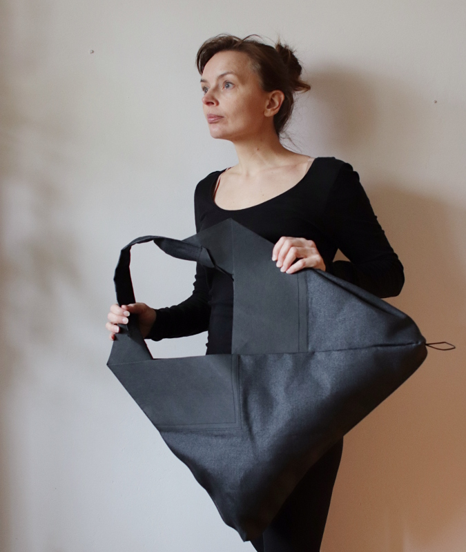 Kolekcja Origami City to torby inspirowane japońską sztuką składania papieru Origami. Torby są oryginalne w formie, ale proste i bardzo praktyczne w użytkowaniu. Każda duża torba ma wpinaną saszetkę na dokumenty i smycz na klucze. Wykonane są z grubego brezentu lnianego lub specjalnego papieru do szycia. Impregnowany len jest produkowany w zakładach pod Łodzią. Brezent lniany o tak wysokiej gramaturze jest sztywny, ale z czasem będzie robił się bardziej miękki. Może też przecierać się naturalnie na krawędziach i miejscach zgięcia materiału. Tkaniny papierowa jest podobnej wytrzymałości co bawełna. Jest to materiał który można prać i prasować. W wyglądzie przypomina zarówno skórę jak i papier.